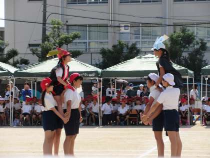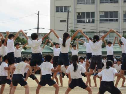 5・6年 団競の「騎馬戦 今、戦いの刻〜初陣〜」では、大将の凛々しいあいさつ、攻める、守るそれぞれの作戦で見ごたえのある戦いでした。