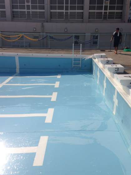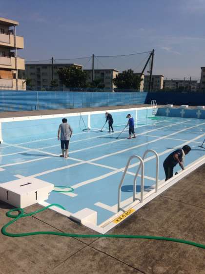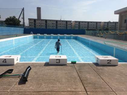 プール清掃の日でした。毎週、1回水を変えています。昨日、雨が降ったせいなのか少し汚れていて、モップなどを使って中の壁などをこすって汚れを落としました。