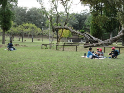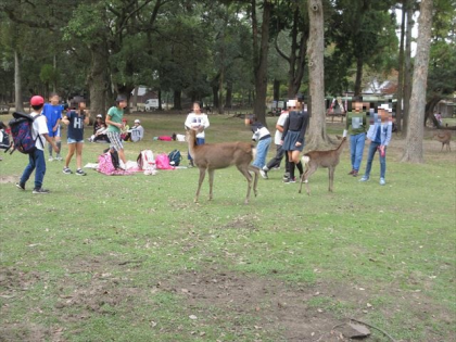 お昼は、近くにシカを見ながら、お弁当を食べました。