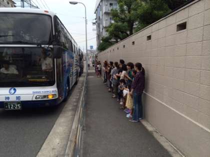 いよいよ出発です。保護者の見送りの中、5年生68名は元気に神鍋高原へ出発しました。神鍋高原には11時50分到着予定です。