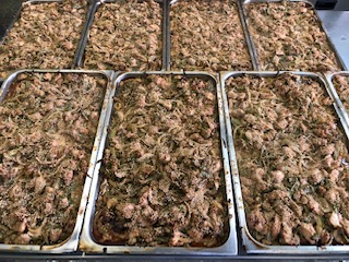 31日の給食は、鶏肉のごまだれ焼き・ソーキ汁・もやしのしょうがじょうゆ和え・ごはん・牛乳です。