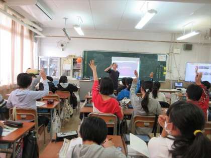 6年 外国語授業 公開日 2018/11/01 更新日 2018/11/01 6年生 10月31日(水) 6年生の外国語授業が3,4限目に行われました。 外国の紹介を子どもたちが発表してくれました。 いいね(0)