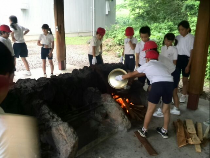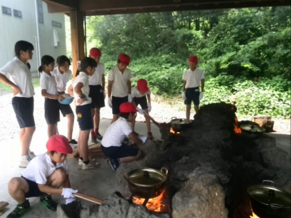 材料を切るグループとかまどの火を調整するグループに分かれて一生懸命作ります。