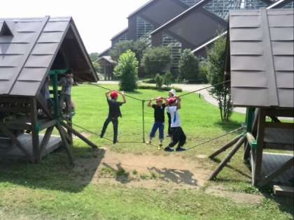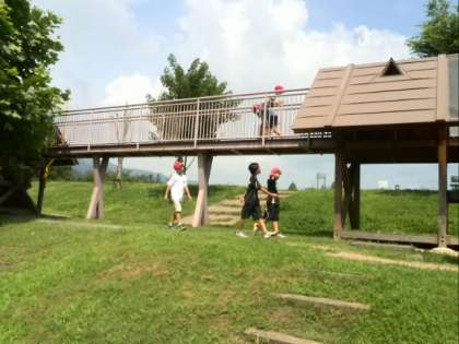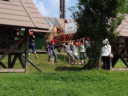 八反の滝で涼んだ後は、但馬ドームの敷地にあるアスレチックで体を思い切り動かしました。