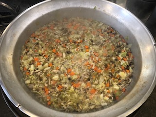 スープ煮は、てぼ豆やキャベツ、しめじなど具だくさんで彩りもよくて、野菜のうまみが出たスープでした。