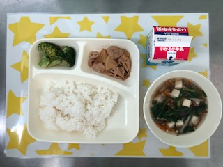 8日の給食は、豚肉のコチジャン炒め・もずくスープ・ブロッコリーのナムル風和え物・ごはん・牛乳です。