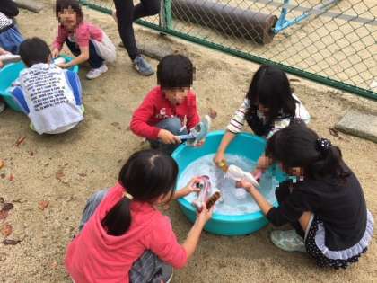 1年生は、生活科の勉強として、自分の上ぐつを洗いました。