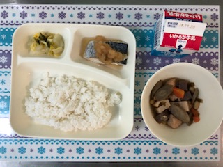 14日の給食は、さごしのおろしじょうゆかけ・五目豆・白菜の甘酢あえ・ごはん・牛乳です。