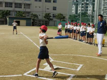 4人のオリックス・バッファローズのコーチが来て、野球のルールを丁寧に教えてくれました。