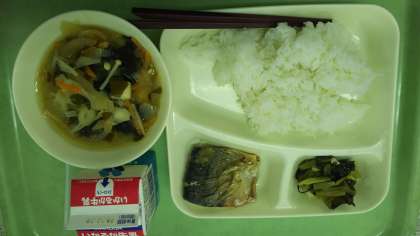 米飯・牛乳・サバのみぞれかけ・みそ汁・小松菜の煮浸しです。