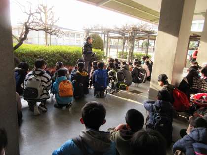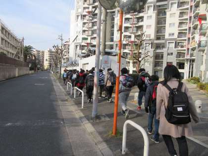 「本日は晴天なり!!」と6年生は、笑顔で登校してきました。