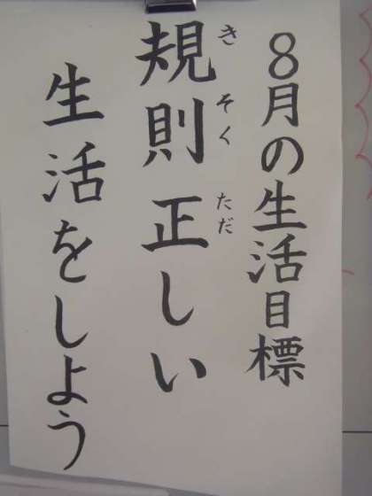 夏休みに入って、不規則な生活をしている人は、いませんか?生活指導部では、8月も生活目標を設定しています。