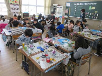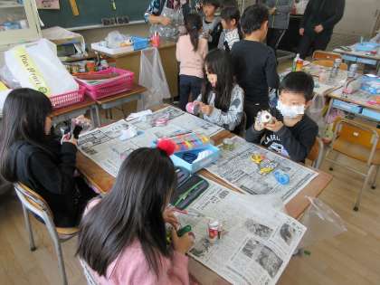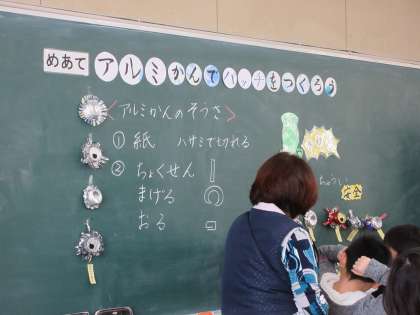 ハサミを使って、アルミ缶を切ったり、折り曲げたりするので、切り傷ができないように注意をしながら、一生懸命作っていました。子どもたちは、夢中になって、とても素敵なカンバッチをつくっていました。