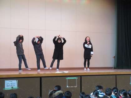 今日は、児童集会で「バレンタインクイズ」をしました。