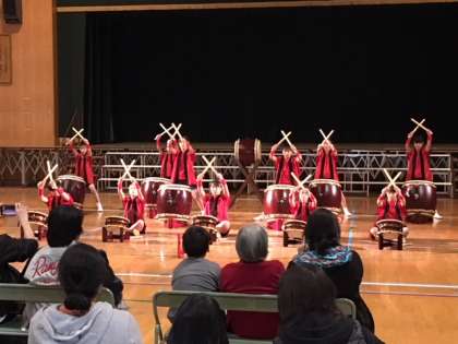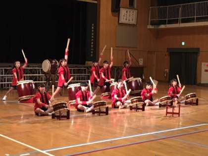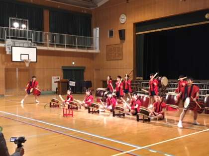 今日は、本校の講堂で、東井若鮎太鼓の卒業記念公演が行われました。