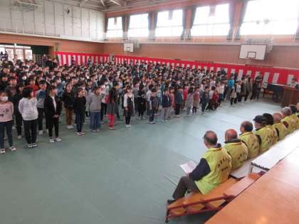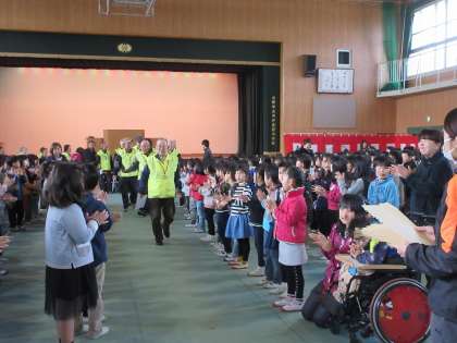 日頃から安全のために見守っていただいてる皆さんに、講堂へ来ていただきました。