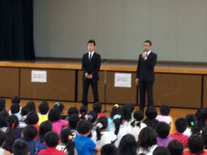 今日から、2学期の始業式が始まりました。子どもたちみんな、雨にも負けず元気に登校してきました。みんな本当に大きくなっていて驚きました。始業式は講堂でおこなわれ、まずはじめに校長先生より夏休みのことについてのお話がありました。雨が多かったことや、努力のつぼについてのお話でした。そのあと、今日からのスクールサポート先生の紹介、転校生の紹介がありました。学期始めなので、出会いがいっぱいあり、みんな、わくわくした気分で見ていました。