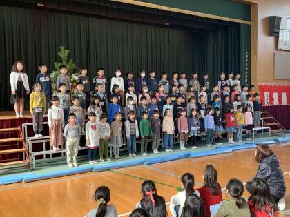 1年生は、4月の入学式で新入生に発表する「校歌」や「アイアイ」などの歌を元気いっぱいに歌ってくれました。