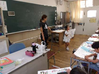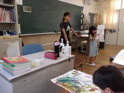 図画工作科、「せんのぼうけん」で、子どもたちは一筆書きの絵を描き、そこにマイキャラクターを足し、物語を作りました。今日はその物語の発表をしました。心の中で作った物語を一生懸命文章にしていました。そしてその内容を発表。聞いている子どもたちは一人ひとりの発表が終わるたびに拍手をしているなど、たくさんのことを学んでいるなあと感じました。おうちの方でもまた、描いた作品について尋ねてみてあげてほしいなと思いました。