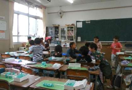 図画工作の時間に、ねんどで好きな食べ物をつくって、みんなでお店あそびをしました。
