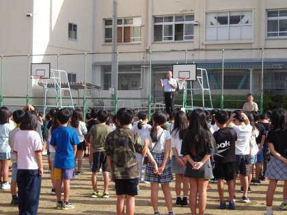 2学期に入ってから暑い日が続いておりましたので、今日学期で初めて運動場で児童朝会を行うことができました。今日の校長先生のお話は中秋の名月。今夜がその日です。天気予報を見ながらHPをアップしましたが今夜は少し雲が出るかもしれませんが概ね晴れるそうです。ぜひお月見なるものをしてみるのはいかがでしょうか。