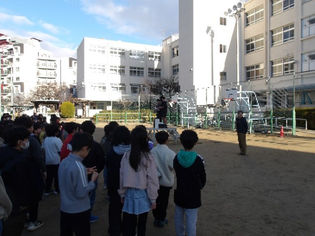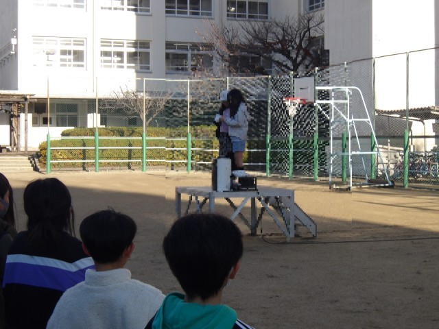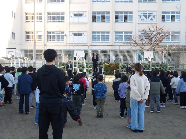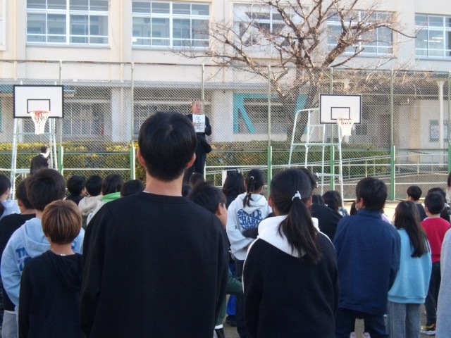 2学期最後の児童朝会でした。寒さに負けず、子どもたちは元気に朝会のお話を聞いていました。読書感想文の表彰やPBS、人気の本の発表など、子どもたちからもいろいろなお話がありました。今日は冬至ということで校長趙先生からは、「ん」つく食べ物のお話がありました。今日の給食の献立は冬至メニューだそうです。これからクリスマスやお正月など冬の行事がたくさんありますね。