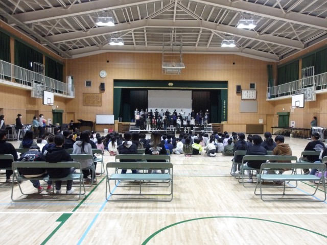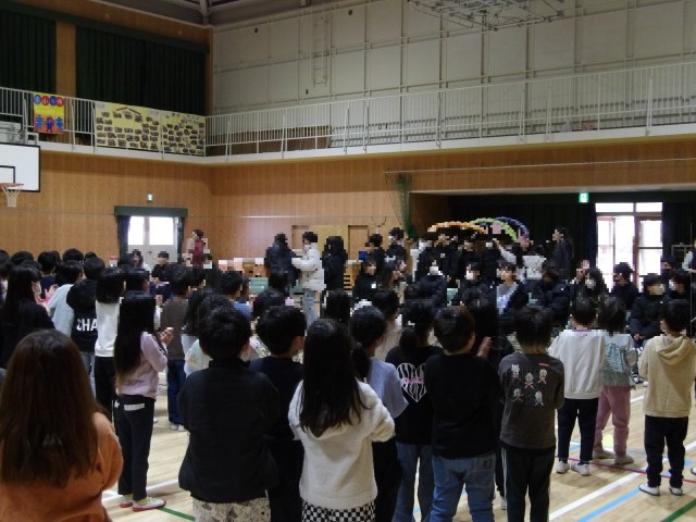 2月26日の1時間目に6年生を祝う会を行いました。初めの言葉からはじまり、ゲーム、在校生からの言葉、歌や色紙のプレゼント。6年生からは合奏、各学級へのプレゼント。5年生の代表委員、集会委員の子どもたちを中心に、とても温かい雰囲気で行われました。一つ一つの場面で温かい拍手が起こっており、みんな一生懸命発表をしました。たてわり班や日々の活動を通じて6年生と在校生はなかよく良い関係をつくることができていたんだなと改めて思いました。卒業式まであと数えるほどの日数になりました。おめでとうという気持ちと、寂しい気持ちが入り混じります。残った日々の中でたくさんの思い出を作ってほしいですね。