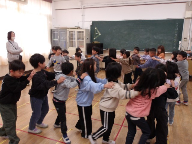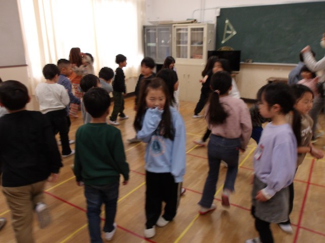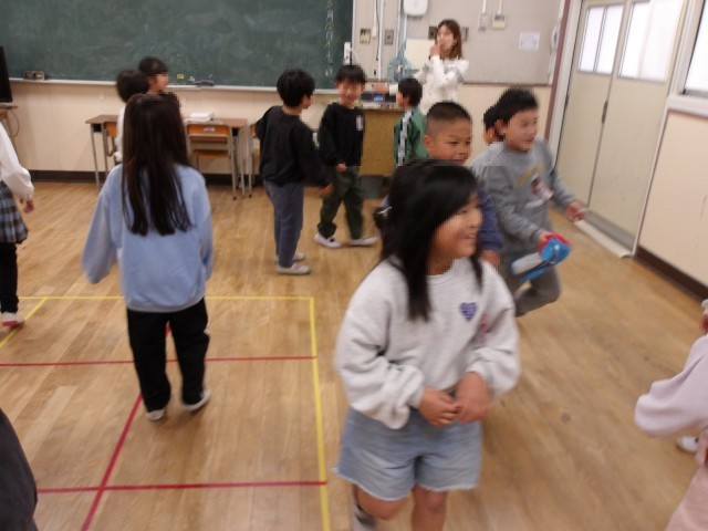 1年1組で自主的に発足した企画係。子どもたちを中心にお楽しみ会、「わくわくあそぼうキッズワールド」を開きました。一つ目のゲームはあっちむいてほい、二つ目はじゃんけん列車、三つ目はしりとりゲームでした。みんなでルールの確認して、みんなでわいわいと楽しむ姿に、また子どもたちの成長を感じました。