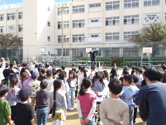 令和8年度最初の児童朝会で今週が始まりました。集合の曲が流れ、全校児童が集合しました。今月の生活目標のお話と、校長先生からは、本校をはじめ、いろいろな小学校のめざす子どもを紹介したうえで、何事も前向きにあきらめずに取り組んでいくことの大切さについてのお話がありました。月曜日の朝は児童朝会から始まります。元気に登校して楽しく充実した1週間にしていきたいですね。