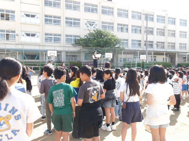 今日の児童朝会では、校長先生から、東井高野小学校のお友だちは、とても友だち思いなひとが多いと思った出来事についてお話をしていただきました。困っているお友だちにためらわず声をかける。そんな人がたくさんいる学校になっていけば、自分が困ったときにも声をかけてくれるお友だちがたくさんいる。そんな学校をみんなで作っていきたいですね。そして、空手大会の表彰も行われました。表彰状と、大きなベルトを受け取り、みんなから大きな拍手が起こりました。