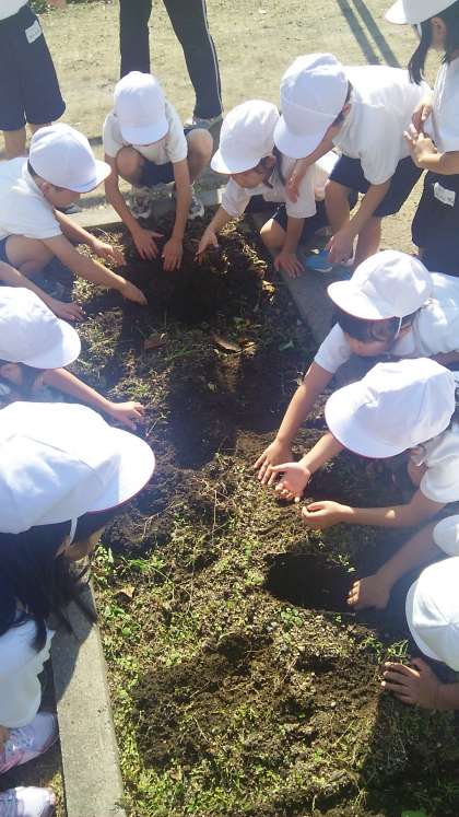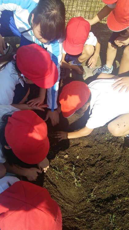 今日は気持ちの良い天気の中、1年生はおいもほりをしました。
