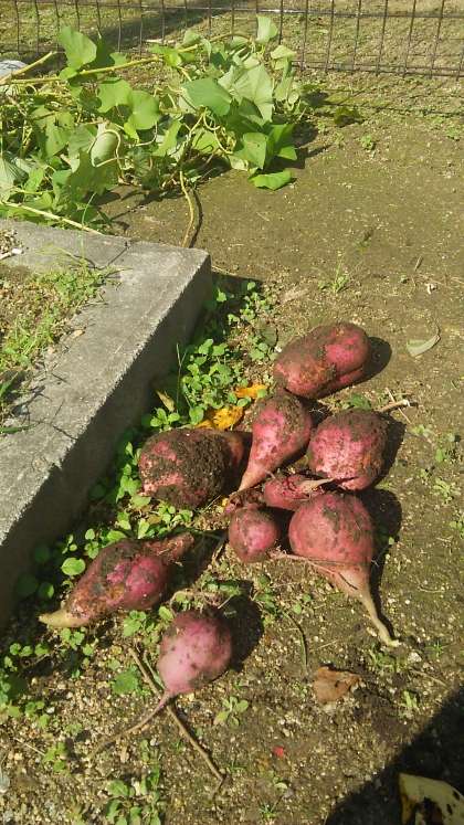 土をたくさん掘って、たくさんのおいもを収穫することができました。