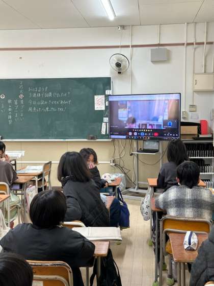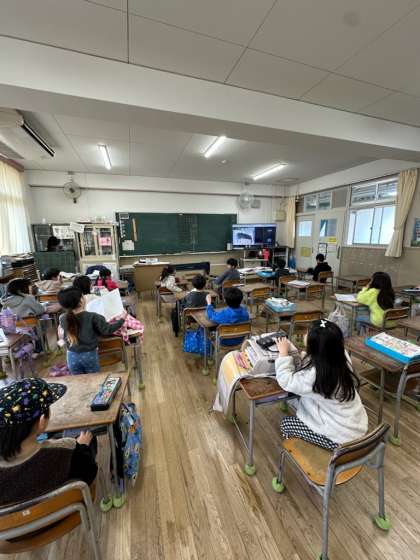 子どもたちも参加できるように工夫して読み聞かせてくださいました。教室からは楽しそうな声もよく聞こえてきました。 -