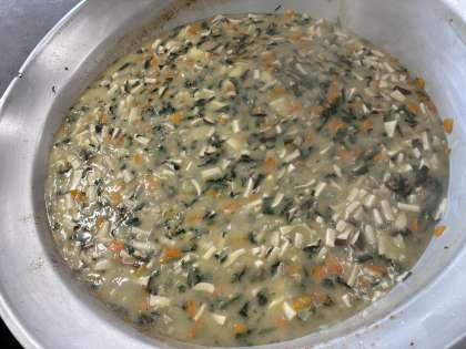 鶏肉とほうれんそうのシチューは、いろどりもよく、じゃがいもがほくほくで体が温まりました。