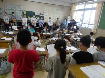 保護者の方たちが見ている中でも、みんな大きな声で元気よく発表することができていました。