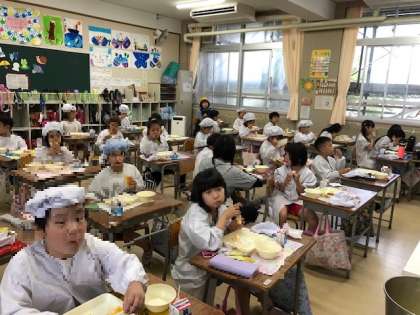 みそしるは、これからの季節に旬をむかえるオクラが入ったみそしるで、具だくさんでオクラの食感やとろみも味わうことができました。