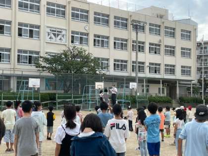 今日から2学期が始まります。夏休みが明けて、少し背が伸びて大きくなった子がたくさんいてうれしく思いました。校長先生からのお話の後、大阪市小学校児童絵画・版画展に出展した児童の表彰も行いました。