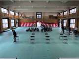 入学式の式場の講堂のそうじやいす並べなどをしています。