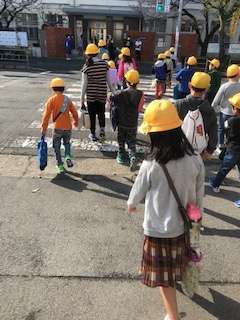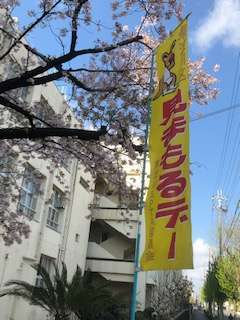 満開の桜が始業式に登校する子どもたちを迎えています。