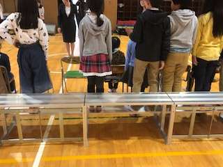 講堂で学級写真を撮影しました。