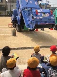 大阪市環境事業局の方が来られ、パッカー車体験を行いました。