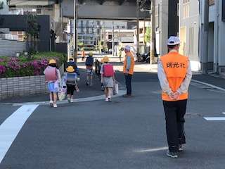 今日は見守るデーです。10日間続いた休みも終わり、今日から学校生活が始まります。子どもたちは、地域や保護者の方々に見守られながら登校していました。