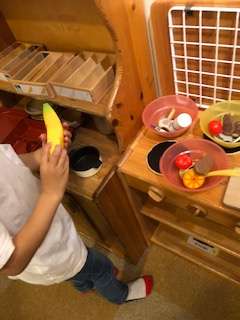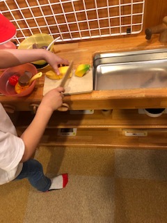 キッチンで料理の体験です。