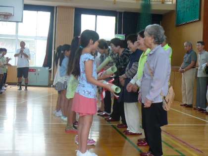 今日の児童集会は「敬老ふれあい集会」でした。地域の老人会の方々にご来校いただきました。子どもたちが感謝の気持ちを込めて書かせていただいたお手紙を各町会の方にお渡しさせていただきました。また、子どもたちの代表が日頃より登下校の見守り等でお世話いただいていることに感謝し、お礼の言葉を述べさせていただきました。
