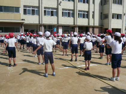 今日は土曜授業の綱引き大会です。いよいよ、始まります。