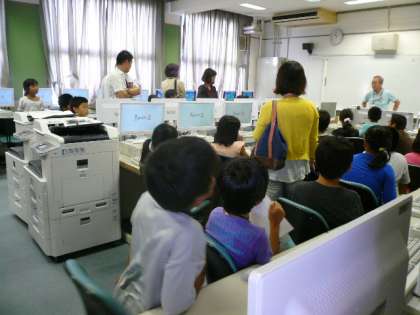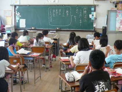 3年生は道徳。4年1組はパソコン学習。4年2組は国語です。