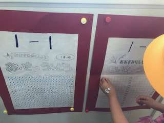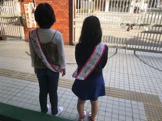 あいさつ週間では代表委員会が登校する子どもたちを迎えます。あいさつを自分からするとシールがもらえて教室で貼っていきます。