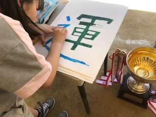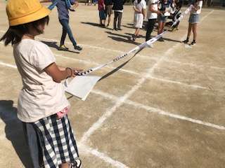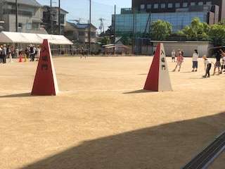 運動会に向けて係活動を行いました。運動場には入退場門も設置されました。運動会まであと10日となりました。