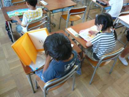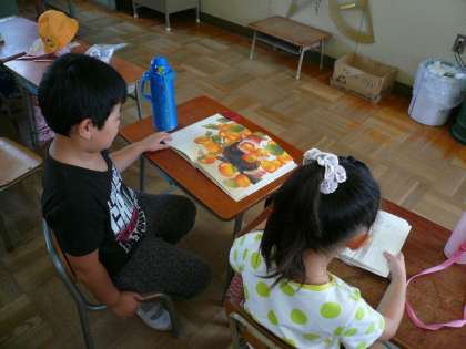 自分で本を選んで読んでいます。本棚の整理も協力して頑張っていました。
