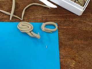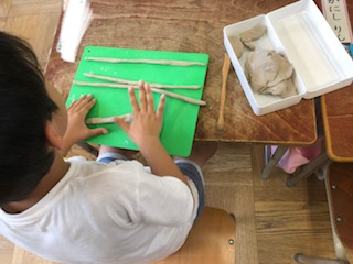 図工で粘土をしました。ひものようなものを作っていろいろな形に仕上げていきます。